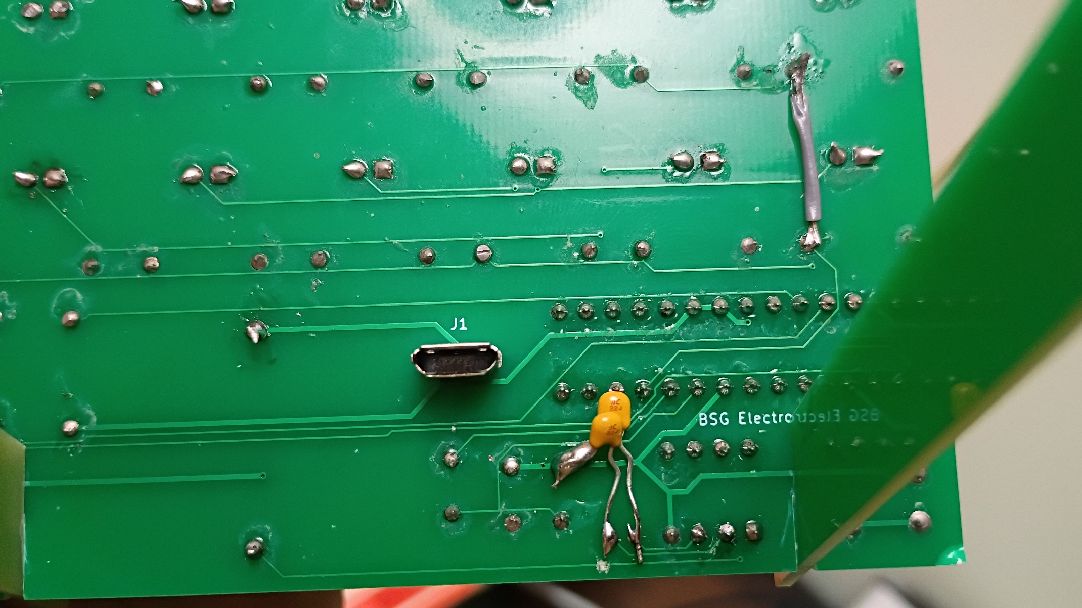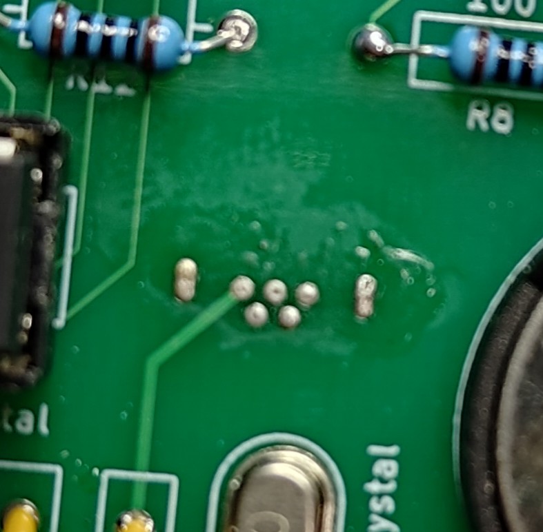 USB Socket - The USB socket should be installed on the back side of the board. Important - Be careful not to get the USB too hot or you may melt and short out the inside of the socket! Also ensure that there are no solder bridges between any of the pins.