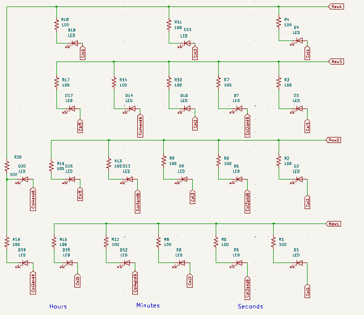 Try to avoid touching the solder points on the back side of the clock board while it is plugged in and running. Touching the solder pins on the back may sometimes cause the clock display to turn off. The clock will still be keeping time, just the LEDs will be off. If this happens, disconnect the power plug and plug it back in to restart the LEDs.